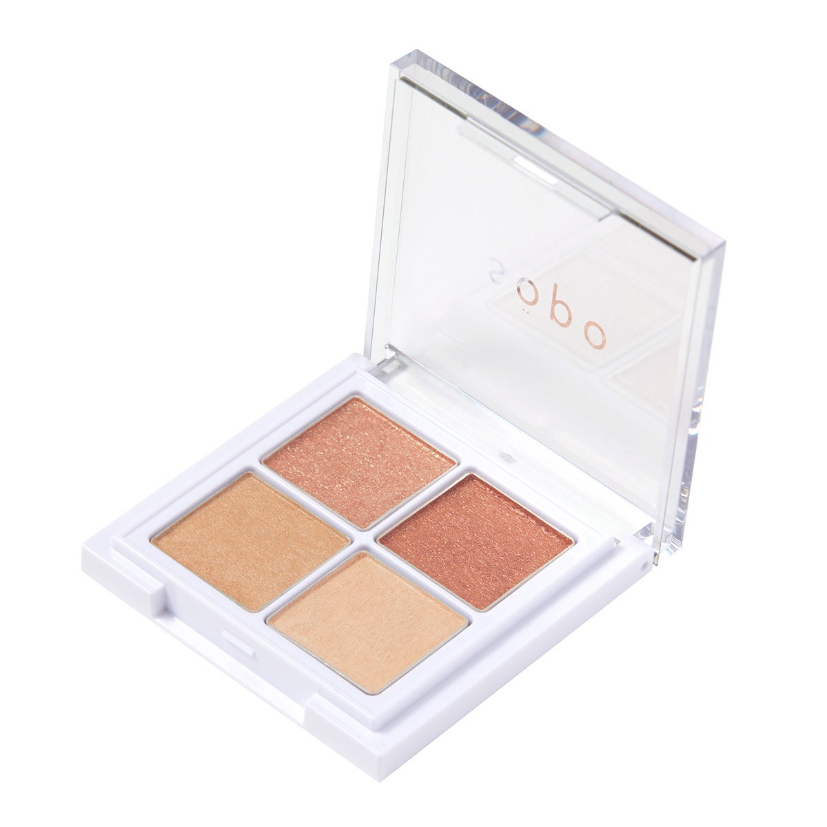 【内容】自然な陰影を引き出す下段2色のマットな透け感ベージュがポイント。左上には温かく輝くコーラル×ゴールドのラメ、右上には繊細なパールを配置し、様々な質感と色の組み合わせが楽しめるアイパレットです。
