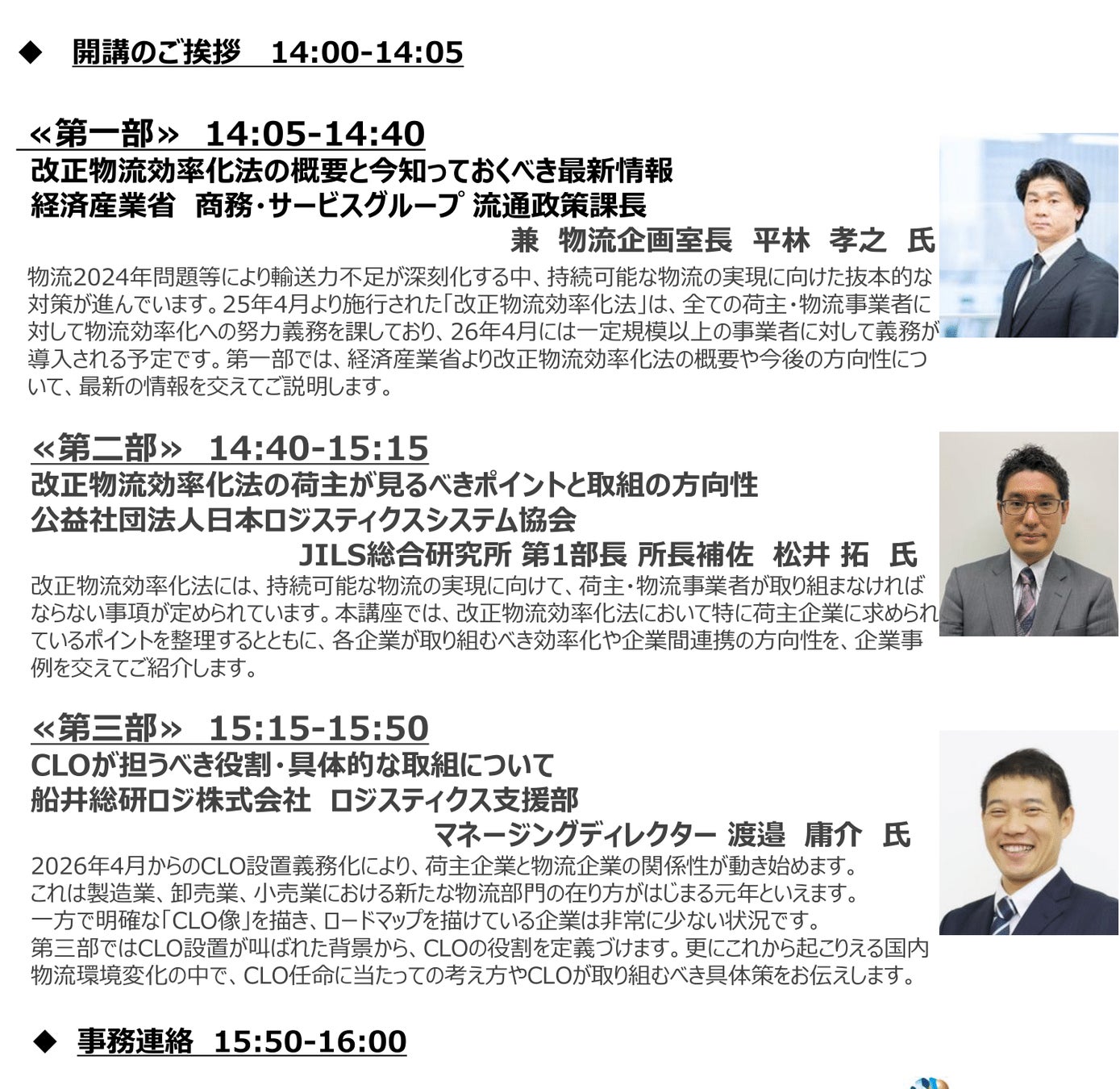 詳細はこちら≫https://logiiiii.f-logi.com/wp-content/uploads/2025/09/202510_logistics-strategy-seminar.pdf