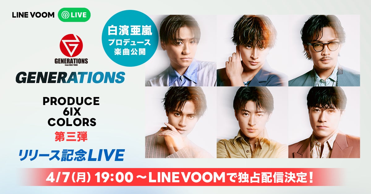 GENERATIONS『PRODUCE 6IX COLORS』第3弾!白濱亜嵐さんプロデュース楽曲トークとライブパフォーマンスでお送りするリリース記念LIVE特別番組をLINE VOOMにて独占配信