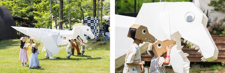 長崎県を中心とする作家のみなさまと企画した「恐竜」にまつわるアイテムの販売と、石川県の「工房ヒゲキタ」による段ボールでティラノサウルスになれる帽子をつくるワークショップを開催。