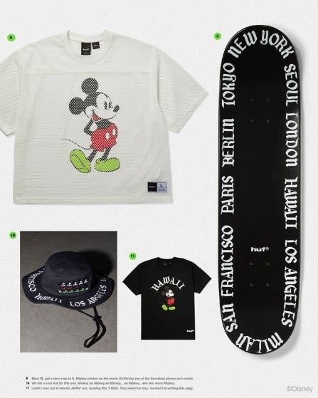 「HUF」は、Hufworldwide Official Onlineおよび世界の主要10都市で厳選された店舗にて、「Disney」とのスペシャルコレクション“Mickey Mouse Part One”をリリースいたします。