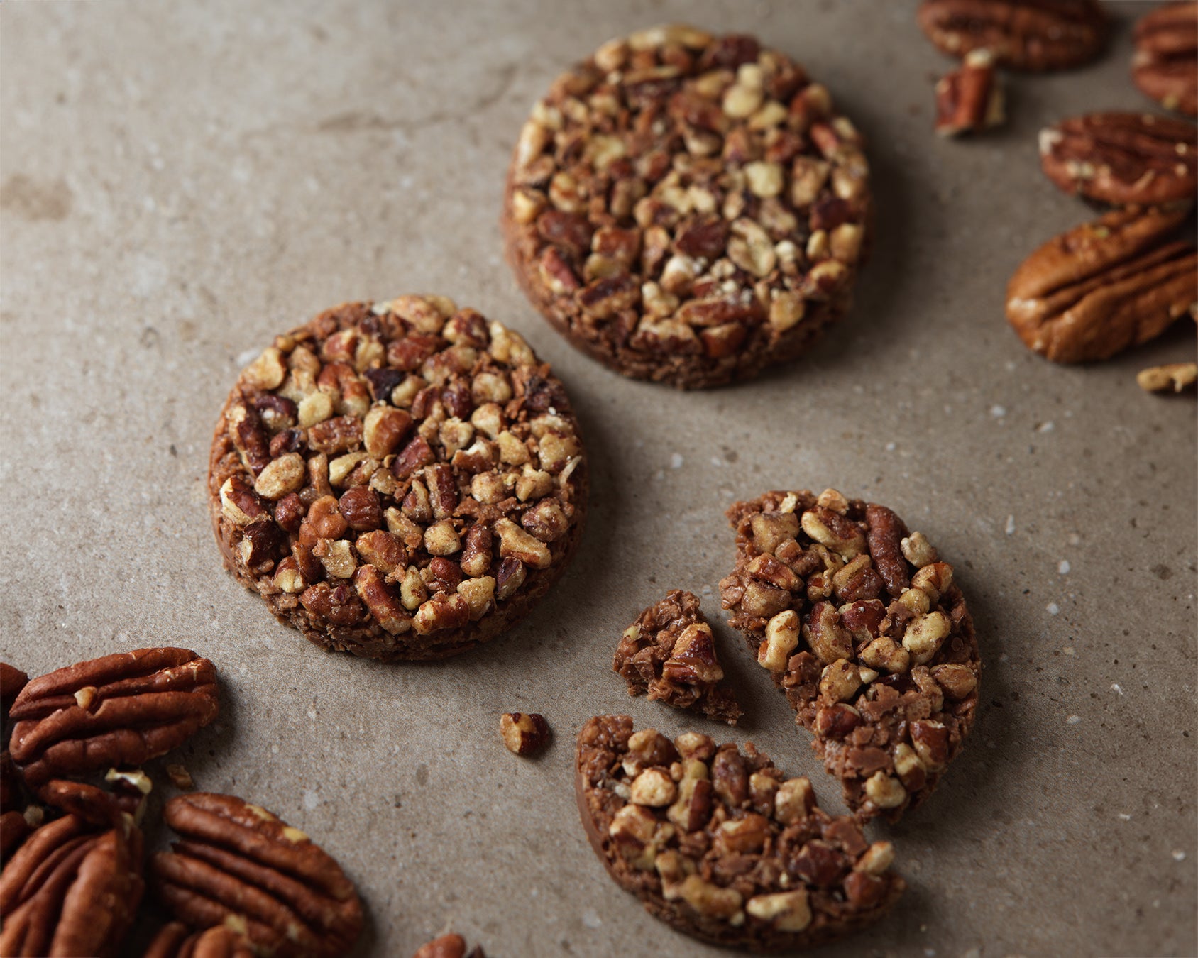 甘く香ばしいピーカンナッツを贅沢に敷き詰めたクランチチョコレート。