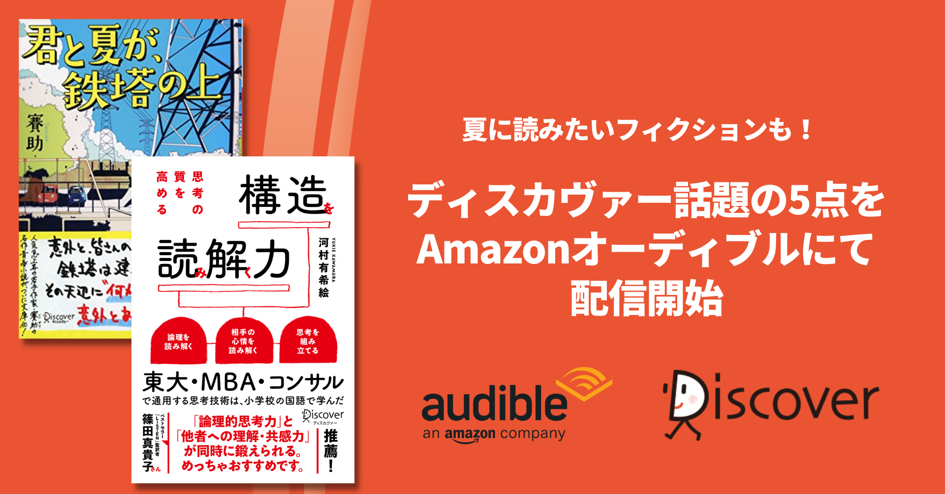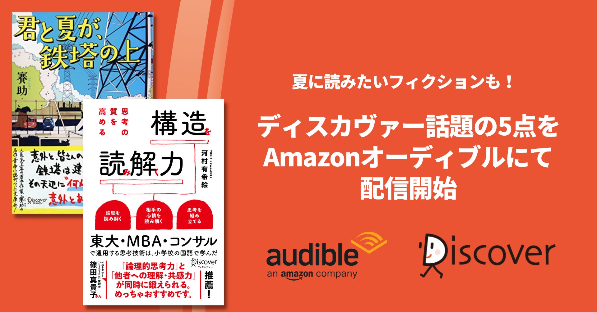 株式会社ディスカヴァー・トゥエンティワン(本社:東京都千代田区、取締役社長:谷口奈緒美)と世界最大級のオーディオブック及び音声コンテンツ制作・配信サービスであるAmazonオーディブル(以下、オーディブル)は、2023年5月に『思考の質を高める 構造を読み解く力』(河村有希絵・著)他4点のオーディオブックを、オーディブルにて発売しました。