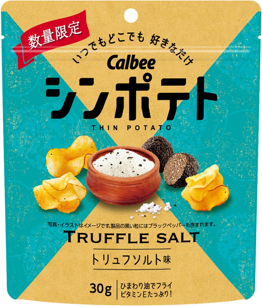 カルビー最薄のポテトチップスシリーズより贅沢フレーバーが登場!芳醇なトリュフ風味をくしゃっと食感で味わえる『シンポテト トリュフソルト味』