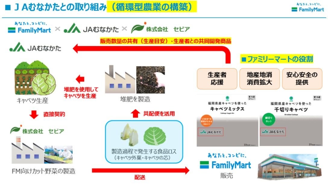 JAむなかた・キャベツ生産者との共同取り組み 不可食部を堆肥として活用して育てたキャベツを使用した2商品を「ファミマルKITCHEN」から発売~地球にやさしい農業体系で地産地消・産地応援を促進します~
