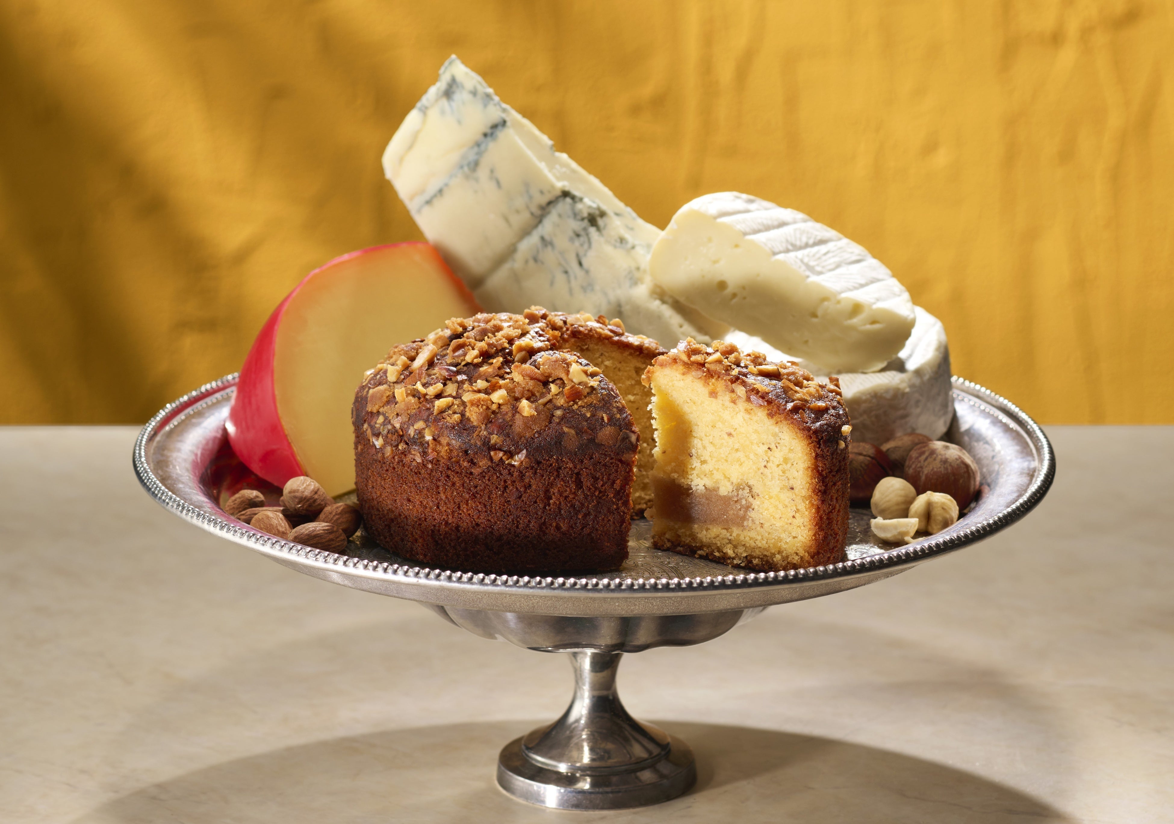 濃厚なゴルゴンゾーラと、皮付きヘーゼルナッツのナッティな味わいを詰め込んだフィナンシェ。バターの香りと百花蜜の甘みが一層深みのある味わいへと誘います。