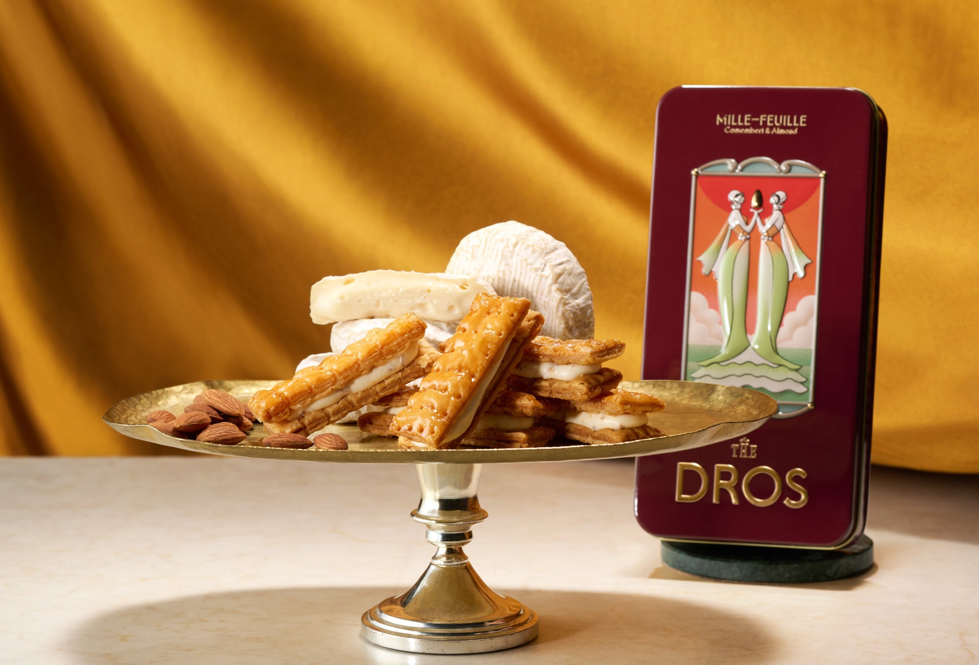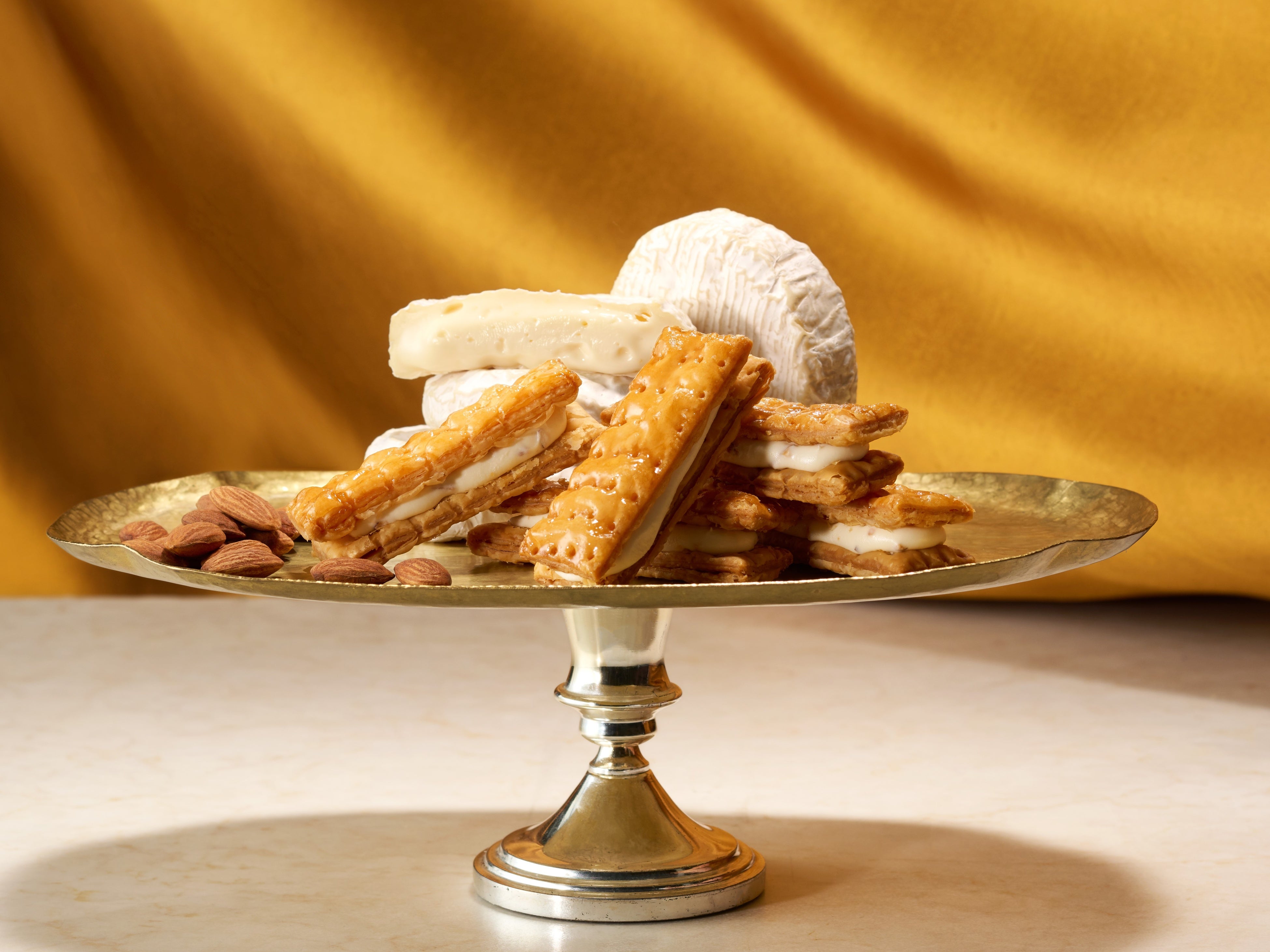2人の女神が織りなす夢幻的な世界。幾重にも重なる黄金色のパイに、まろやかなチーズが溶け合う「ミルフィユ(カマンベール&アーモンド)」新発売