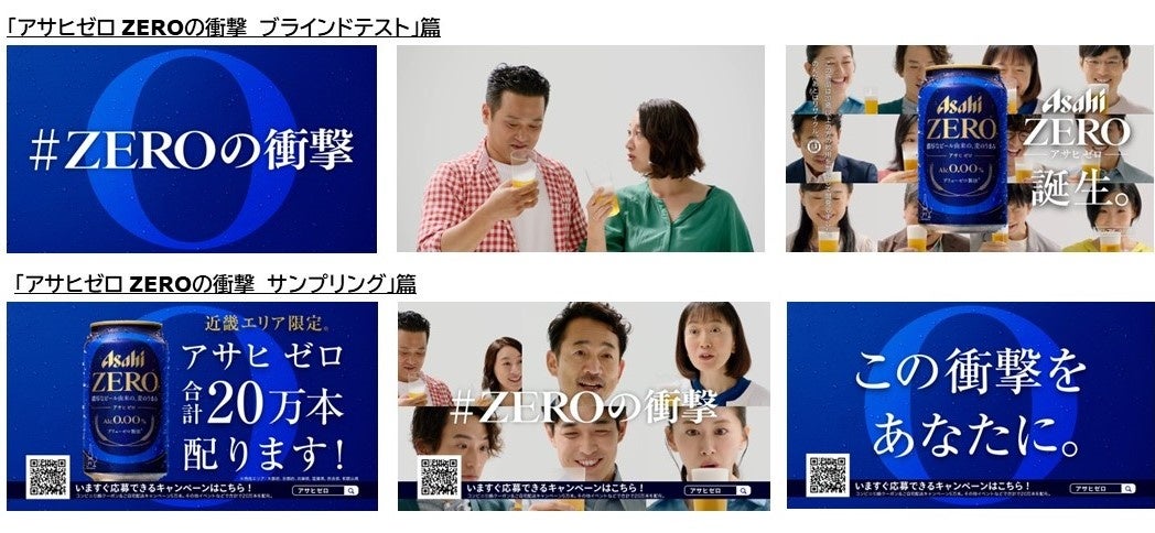 10月24日からは、TVCM「ZEROの衝撃 ブラインドテスト」篇と「ZEROの衝撃 サンプリング」篇を近畿エリア限定で放映します。『アサヒ ゼロ』を試飲した方の驚きの様子を伝える「ブラインドテスト」篇と、多くのお客さまに体感していただくために約20万本へのサンプリング(※)を実施することを伝える「サンプリング」篇の放映を通して、商品の魅力を発信していきます。