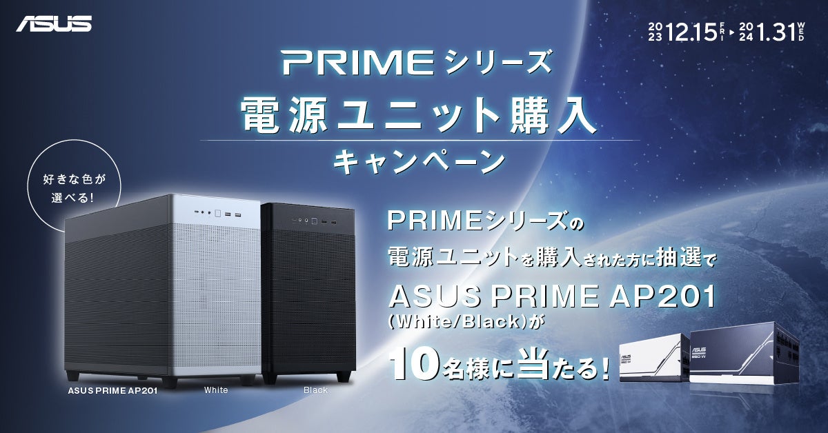 ASUSのPRIMEシリーズの電源ユニットを購入してASUS PRIME AP201 PCケースが当たるキャンペーンを開催