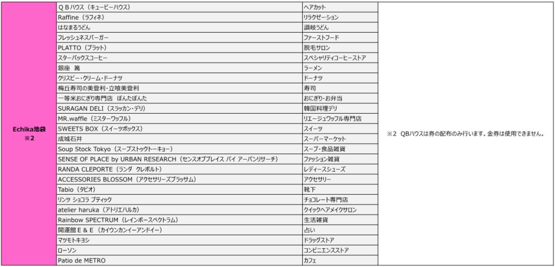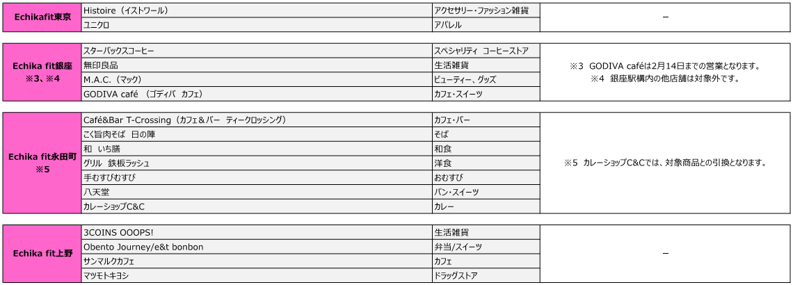 ※対象店舗は別添の「対象施設・対象店舗一覧」をご覧ください。