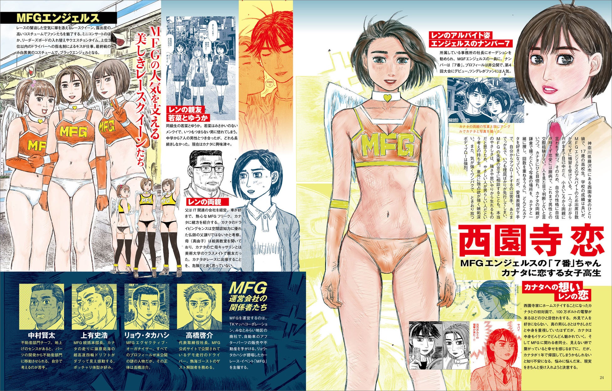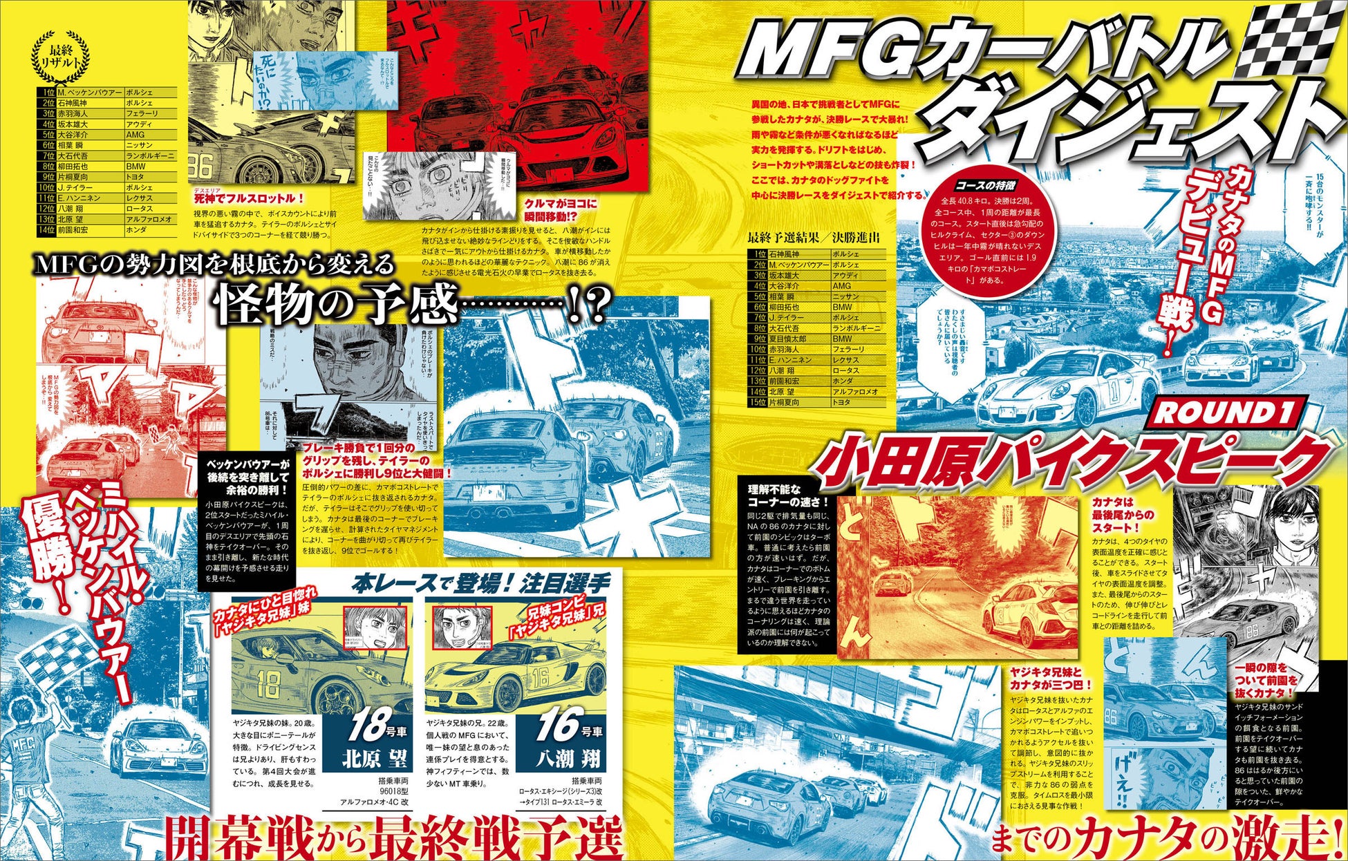 また、MFゴースト特集では、小田原パイクスピークから始まるMFGカーバトルダイジェストやMFGを飾る美女たち、MFGの車の世界を特集している。
