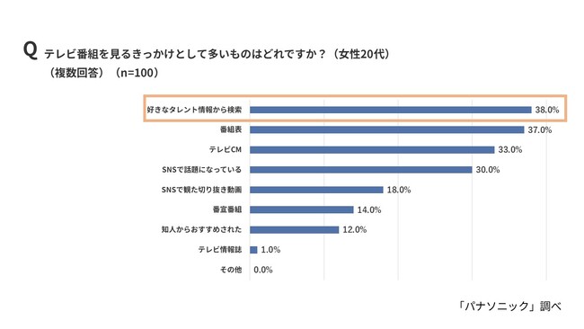 ・Z世代の女性は「好きなタレント情報から検索」がきっかけという人が最多に。テレビ番組の視聴にも“推し活”が影響していることが考えられる。