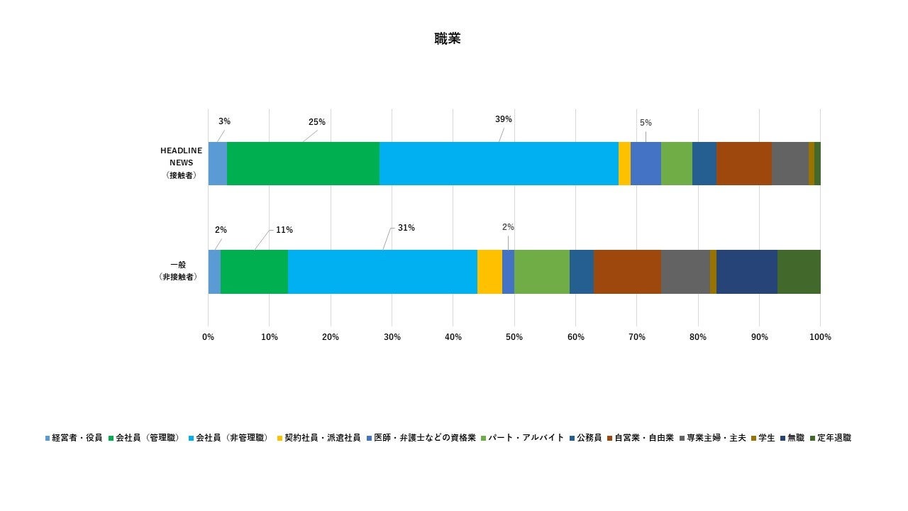 一般層と比較して、「HEADLINE NEWS」ユーザーにはビジネスパーソンが多く、企業の意思決定に携わる割合が高い