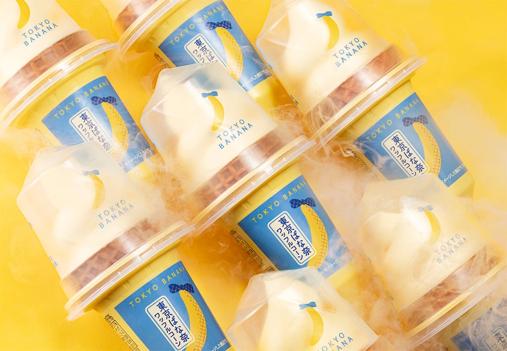 冷凍庫に入れるだけで東京ばな奈のバナナカスタードがアイスクリームのような食感になると話題の、公式認定アレンジレシピ『冷凍京ばな奈』。そんな本家『東京ばな奈』ファンも必見のアイス『ワッフルコーン東京ばな奈』がこの度新登場です!