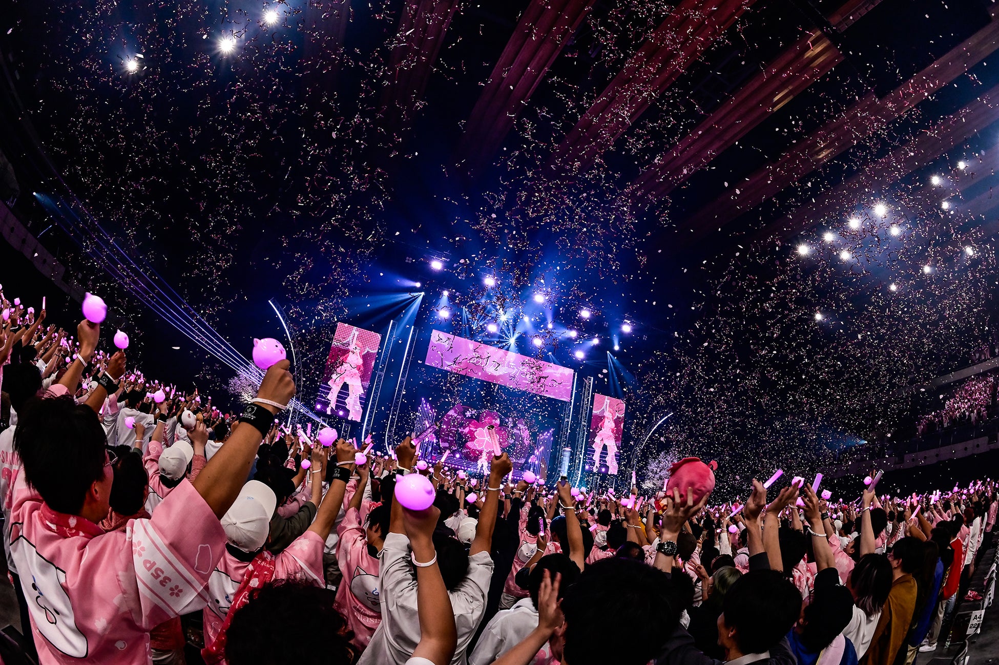 最後の一曲はきっと……。そんな35Pの期待に応えるピアノの旋律で、「サクラカゼ」が始まる。会場には桜吹雪が舞い、花びらの一枚一枚が照明を受けてキラキラと輝く。夢心地のような景色が広がる中、落ちサビで再びピンクドレスに変わると、「ありがとう!」の声を合図に銀テープが発射。さくらみこはやりきった表情で「次の目標はセカンドライブだー!これからもついてきてねー!」と高らかに宣言すると、いつもの挨拶で、念願だったソロライブの幕を下ろした。