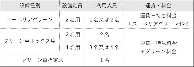 ※ただし主な旅行会社窓口でのグリーン車ボックス席(2名用・4名用)およびスーペリアグリーン車の