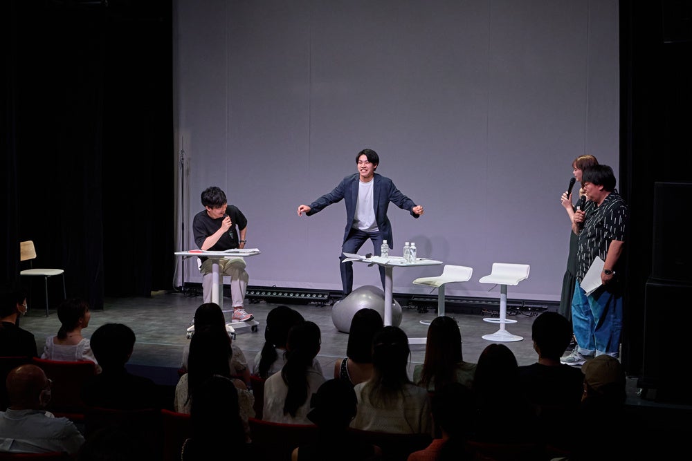 「東京アナウンス学院」は声優・俳優・配信クリエイター・ラジオパーソナリティー・ダンサーなどを育成する専門学校。タイムマシーン3号の2人もこちらの出身で、1998年入学、お笑いコースの同期にあたります。そして、今回の会場であるTAG-TAG theaterは、今年4月に完成したばかりの新しい施設です。