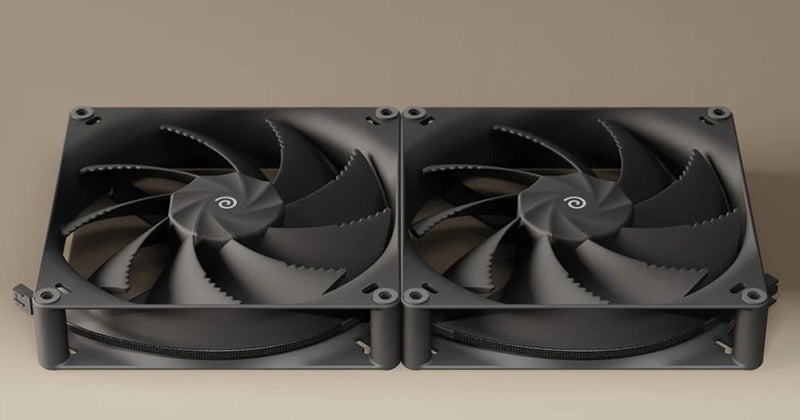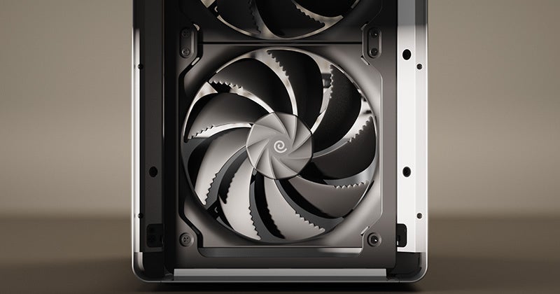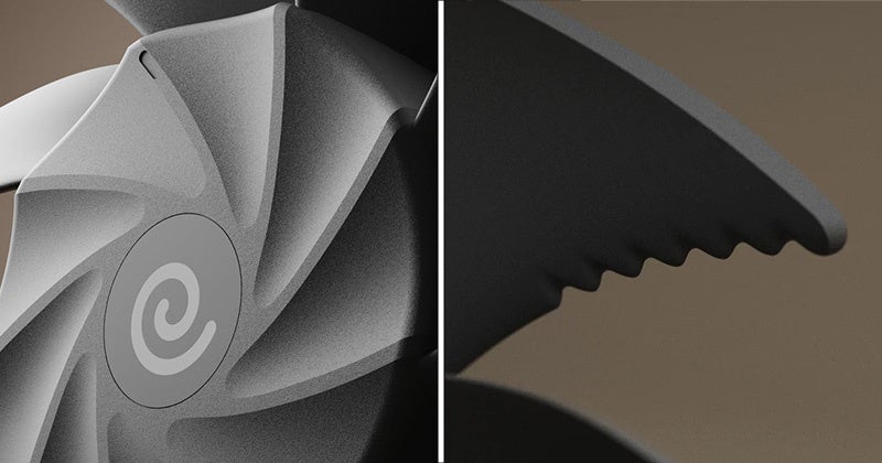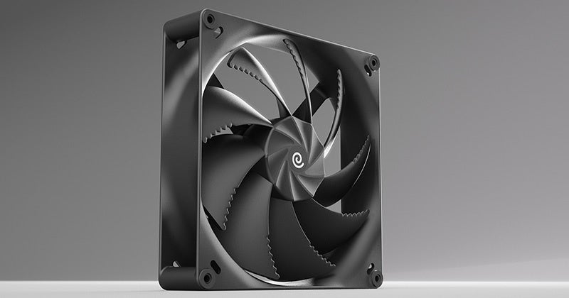 厚さを40mmにしたことで採用できた、長いFDBのベアリングが高い安定性と長寿命を実現しています。また、ファンの軸に傾斜を設けることで空気を効率よくブレードに送れ、ギザギザのブレード形状と共に静圧を向上させ、ノイズも低減しています。