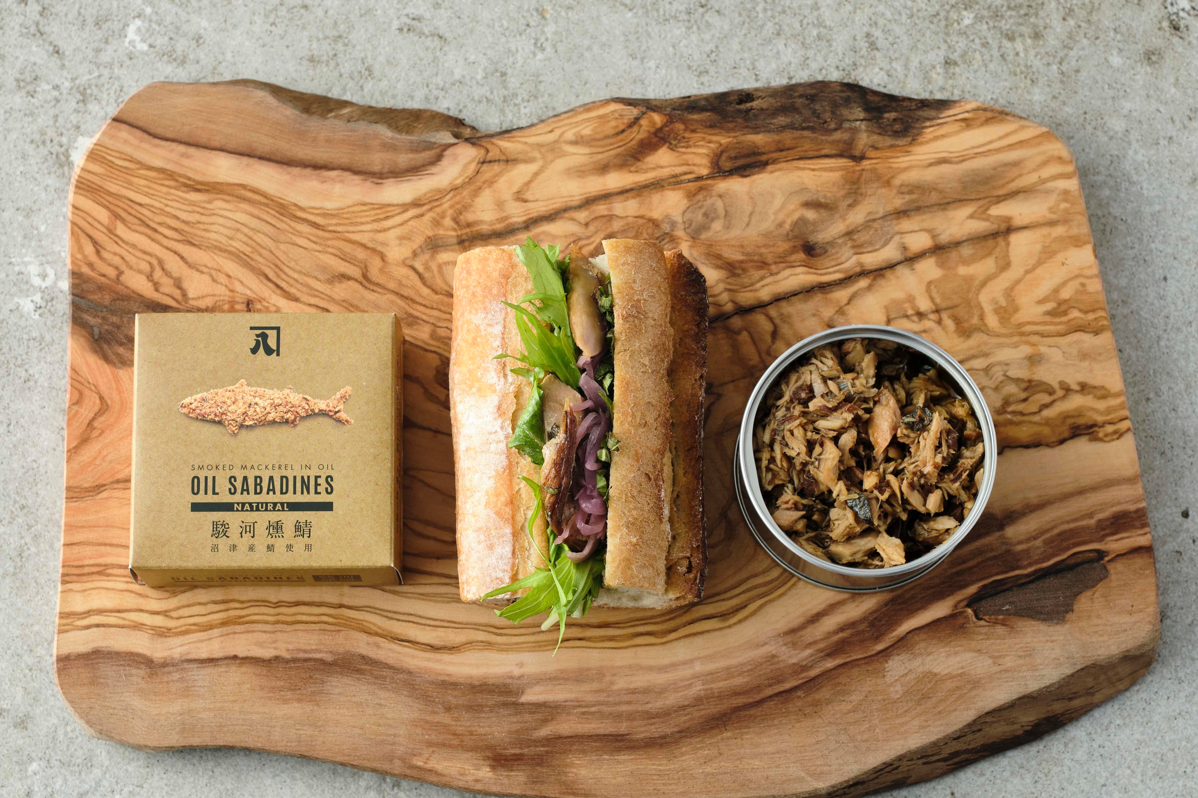 今回は静岡・沼津港の名産品である「削り節」を現代の味覚に合わせてアレンジした、かねはち「オイルサバディン<駿河燻鯖>」を使用した新感覚のサバサンドを提案。オイルサバディンのスモーキーな香りとサバの旨みが凝縮された味わいは、パンのみならずあらゆる料理でのアレンジがお楽しみいただけます。