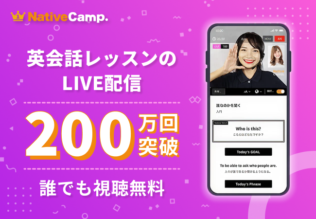 レッスン回数無制限のオンライン英会話サービス「ネイティブキャンプ英会話」を展開する株式会社ネイティブキャンプ(東京都渋谷区 代表取締役:谷川国洋)は、提供する「LIVEレッスン」の累計視聴回数が200万回を突破したことをお知らせいたします。