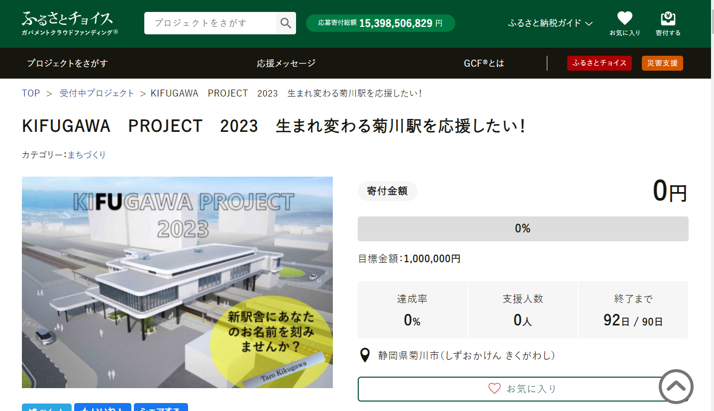 ◆プロジェクト名: KIFUGAWA PROJECT 2023 生まれ変わる菊川駅を応援したい!