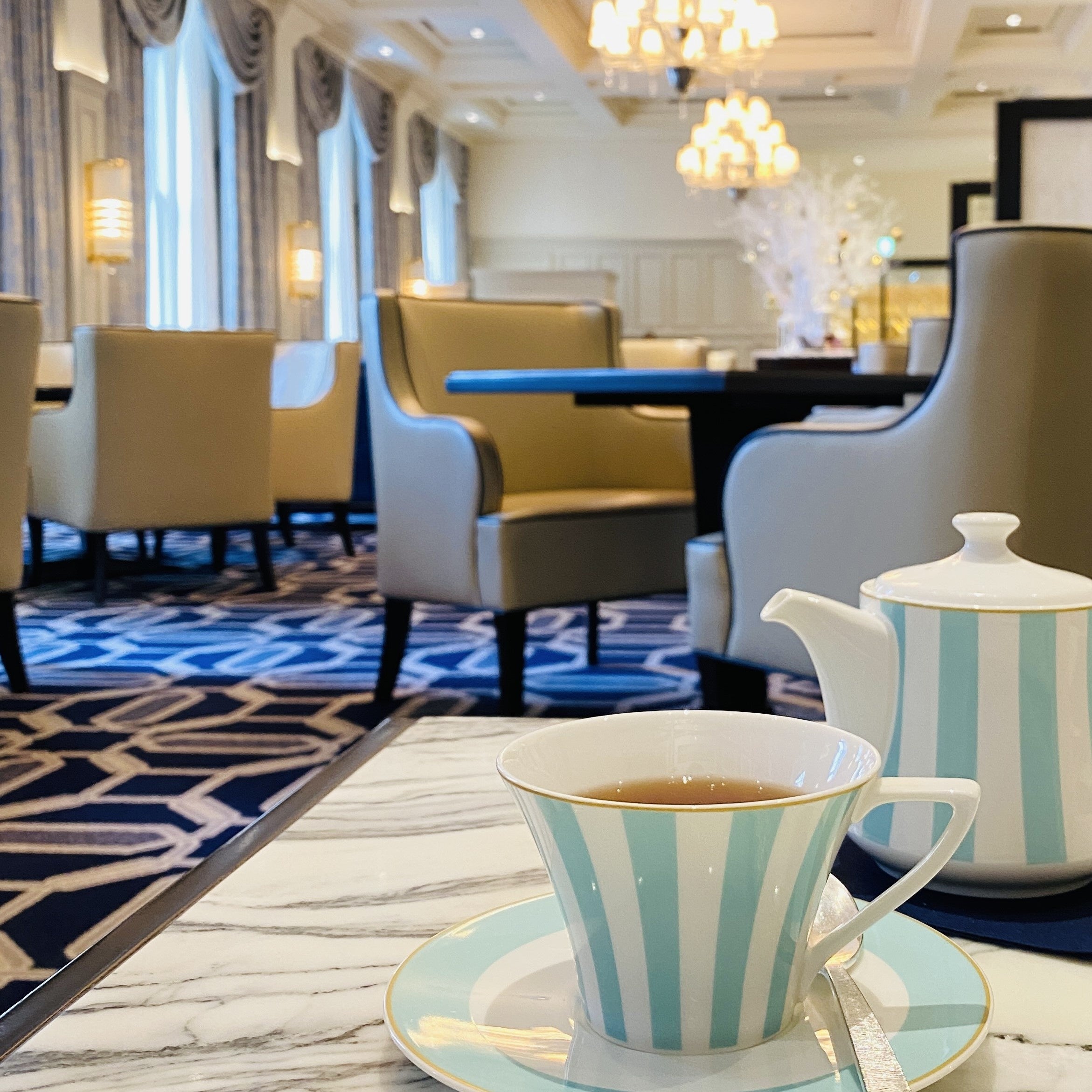 ホテルの外観と融合するようにデザインされた、ヨーロピアンクラシックを基調にしたロビーラウンジの店内は、ゆったりとしたハイティーの時間を過ごす場所にふさわしい、優雅さを備えています。