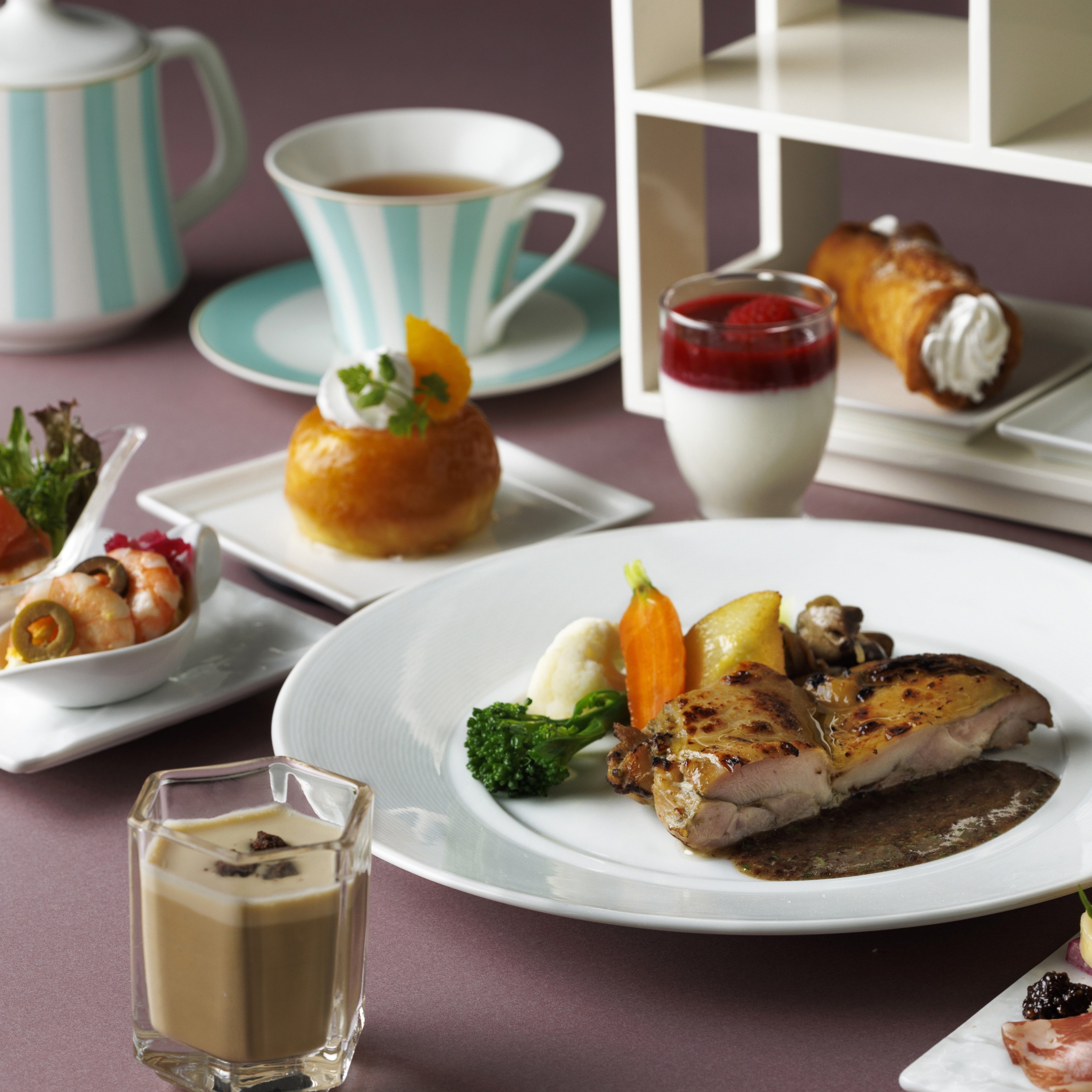 お飲み物はお食事にあわせてセレンディピティー、ロンネフェルト、ベッジュマン&バートンの紅茶やコーヒーなど全14 種類からお好きなだけご堪能いただけます。