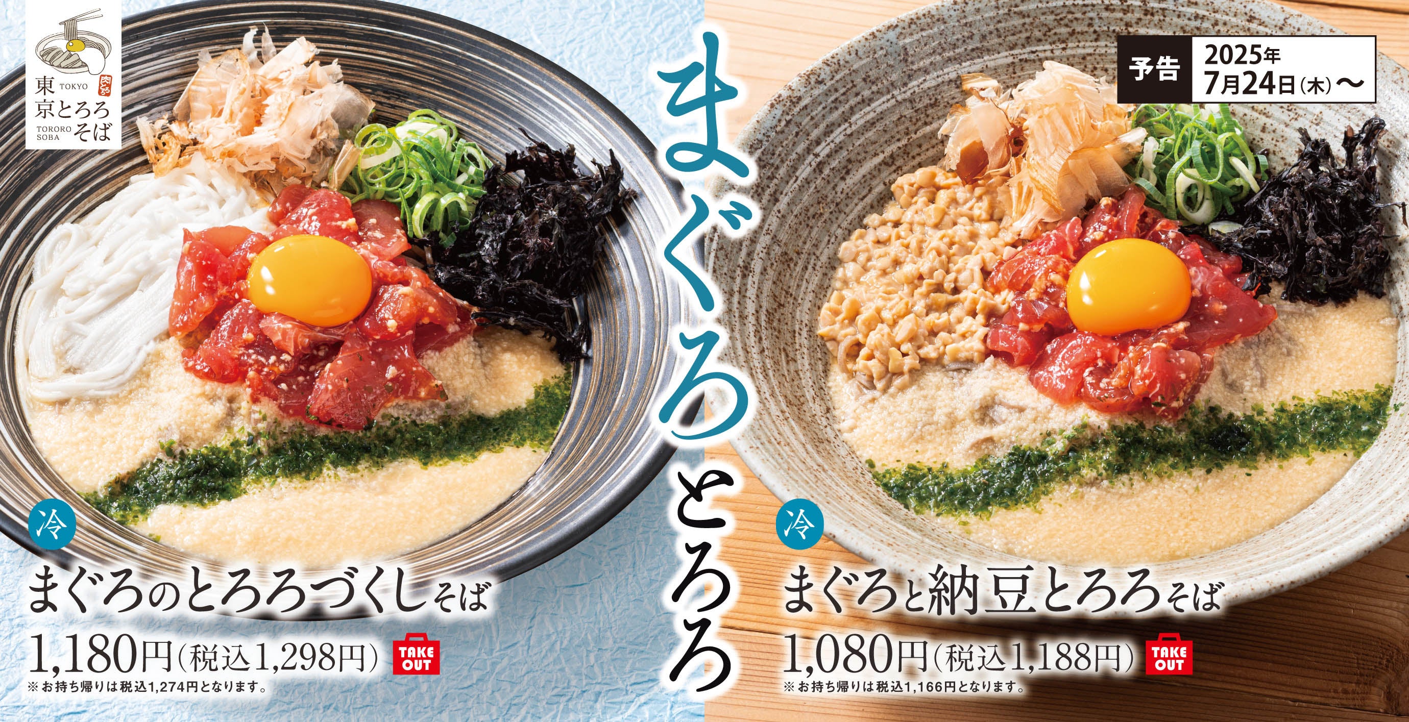 夏本番に日々の活力となる創作そばが選べる「東京とろろそば」にて、期間限定メニュー「まぐろのとろろづくしそば」と「まぐろと納豆とろろそば」を、2025年7月24日(木)より販売開始いたします。
