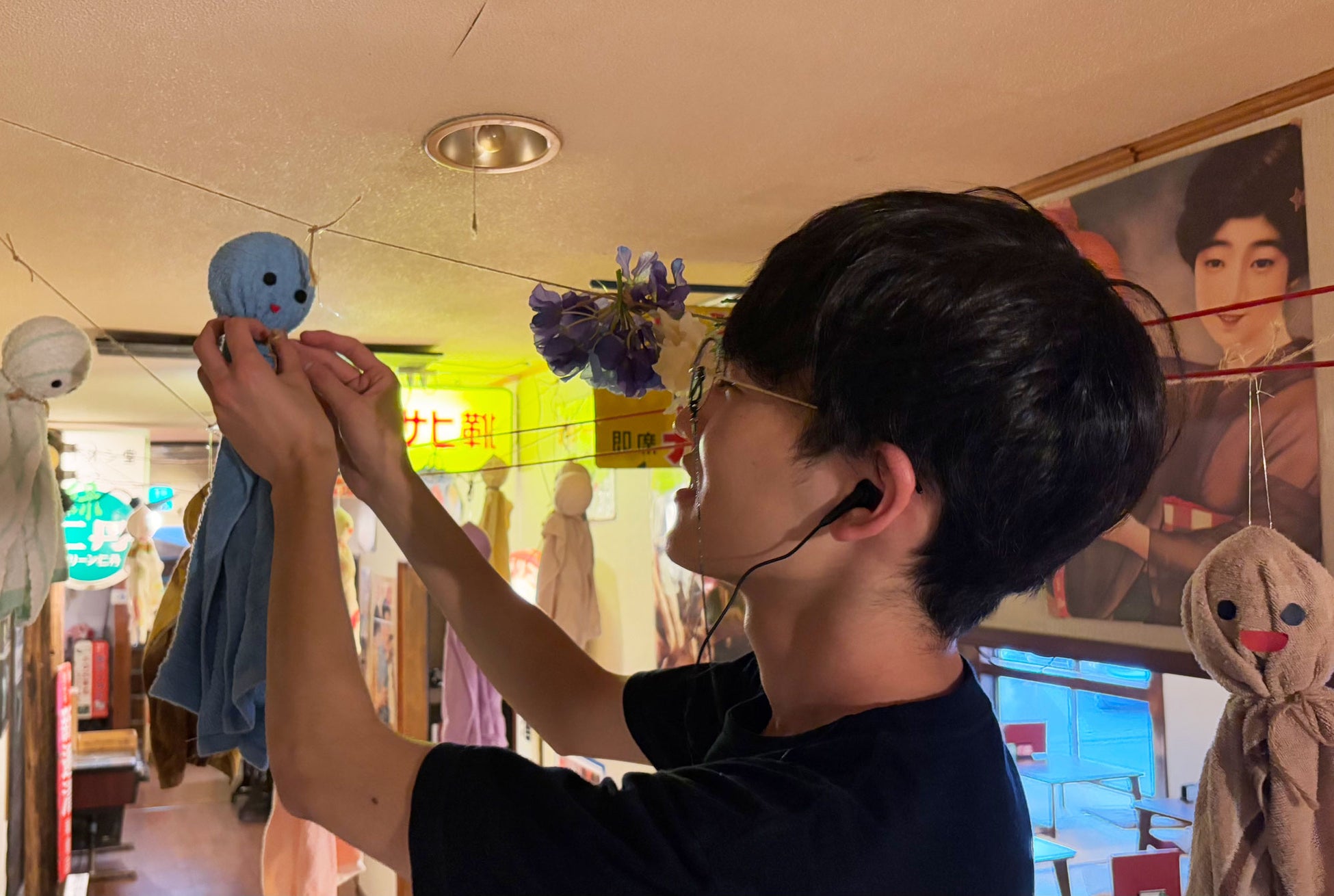 関東地方梅雨入りのニュースを受けて、昭和レトロな温泉銭湯 玉川温泉、秩父湯元 武甲温泉、おふろcafe 白寿の湯で「忘れ物タオルのてるてる坊主」の装飾を開始しました
