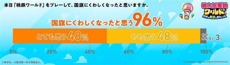 ①96%※1が、「国旗にくわしくなったと思う」と回答(48%が「とても思う」、48%が「やや思う」)