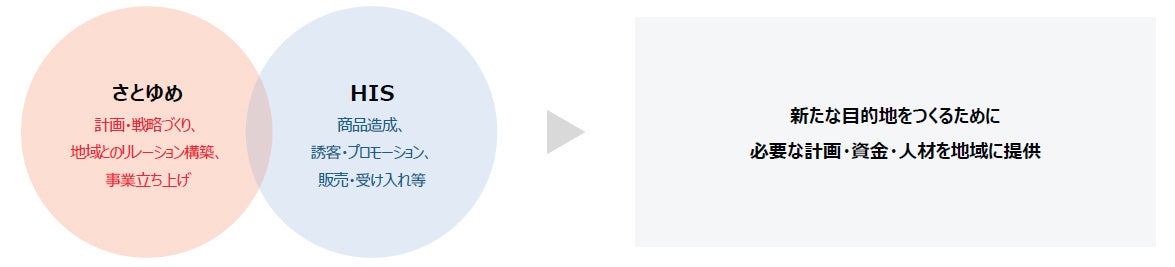 このたび、HISは地域支援事業をさらに拡大させるべく、さとゆめと資本業務提携をし、海外市場も意識した地方創生で、地域の新たな魅力と自ら稼ぐチカラを創出し、「新たな目的地の創出事業」を目指します。