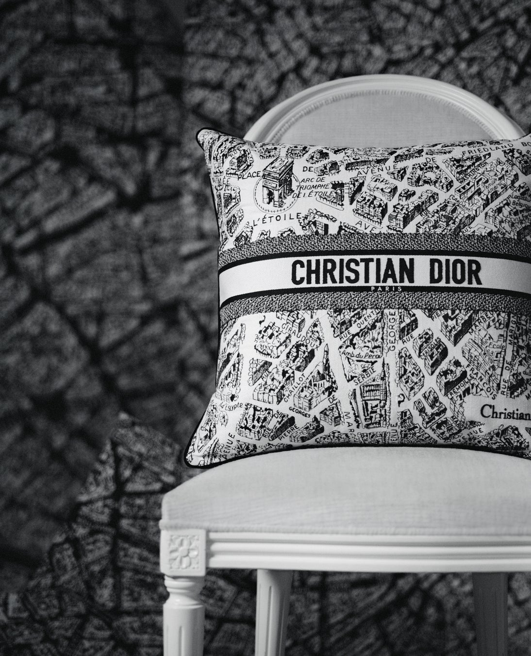 マリア・グラツィア・キウリによる 2023 年春夏 コレクションにて発表された「プラン ドゥ パリ」モチーフ。1950年代にディオールが制作したスカーフにインスパイアされ、創設者 ムッシュ ディオールが偶然、幸運の星「ラッキー スター」に出会ったフォブール=サントノレ通りから、メゾンを象徴するアドレスであり、卓越したサヴォワールフェールが光り輝くモンテーニュ通り30番地まで、ディオールとパリをつなぐ場所を繊細に描いたこのポエティックなモチーフが卓越したサヴォワールフェールとともにメゾンのクリエイションに落とし込まれ、刺繍があしらわれたクッションやウォーターボトル、キャンドルを包む磁器のポット、プレースマットといったアイテムを彩ります。1946年の創設当初からメゾンにインスピレーションを与えてきた光の街の魔法を体現するこのコレクションは、ディオール メゾン取り扱いブティックおよび公式オンラインブティックにてお求めいただけます。