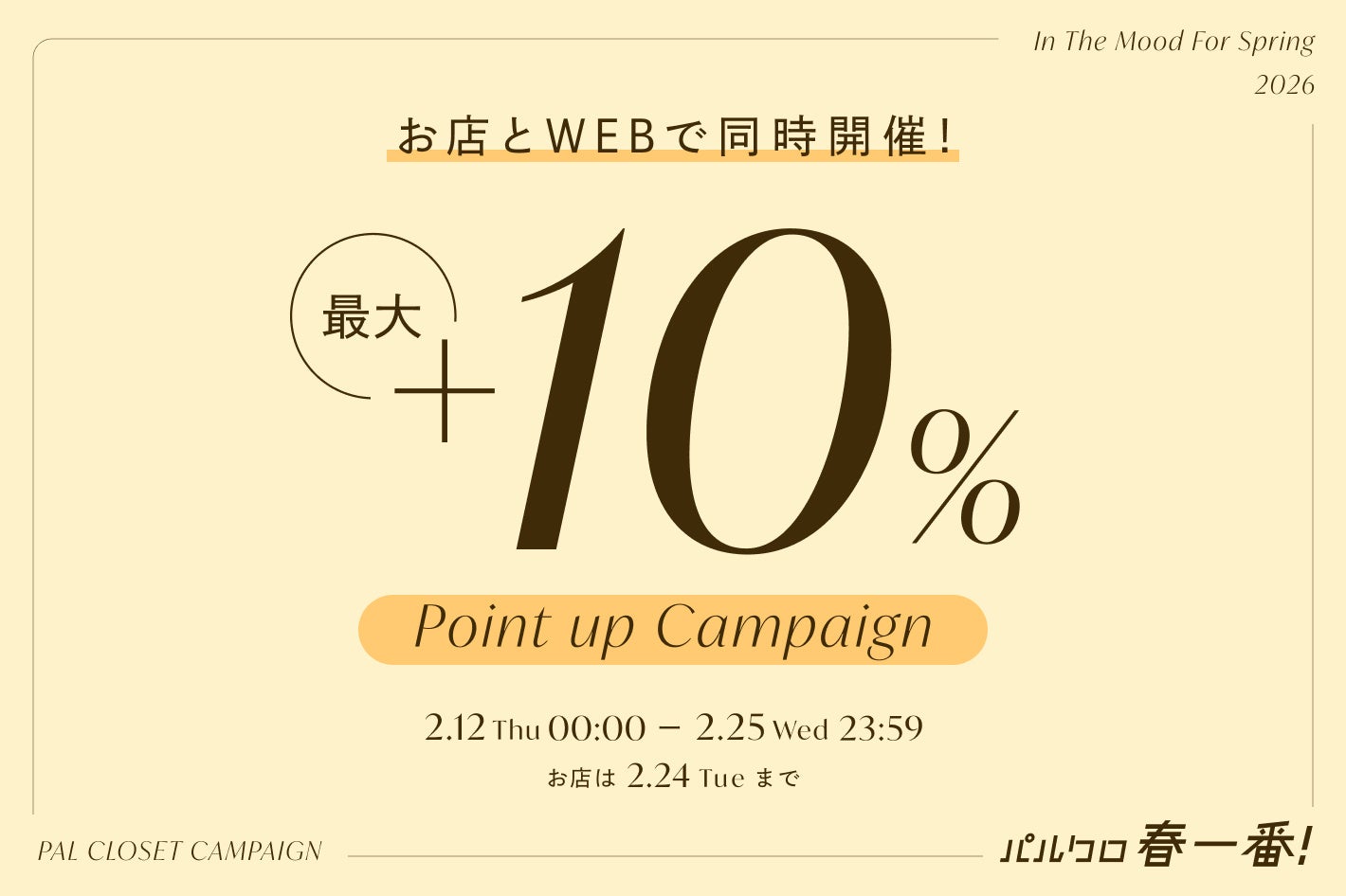 2月12日~2月25日(お店は2月24日まで)の期間、パルグループの各店舗&パルクローゼットオンラインストアにて『パルクロ春一番』を開催いたします。