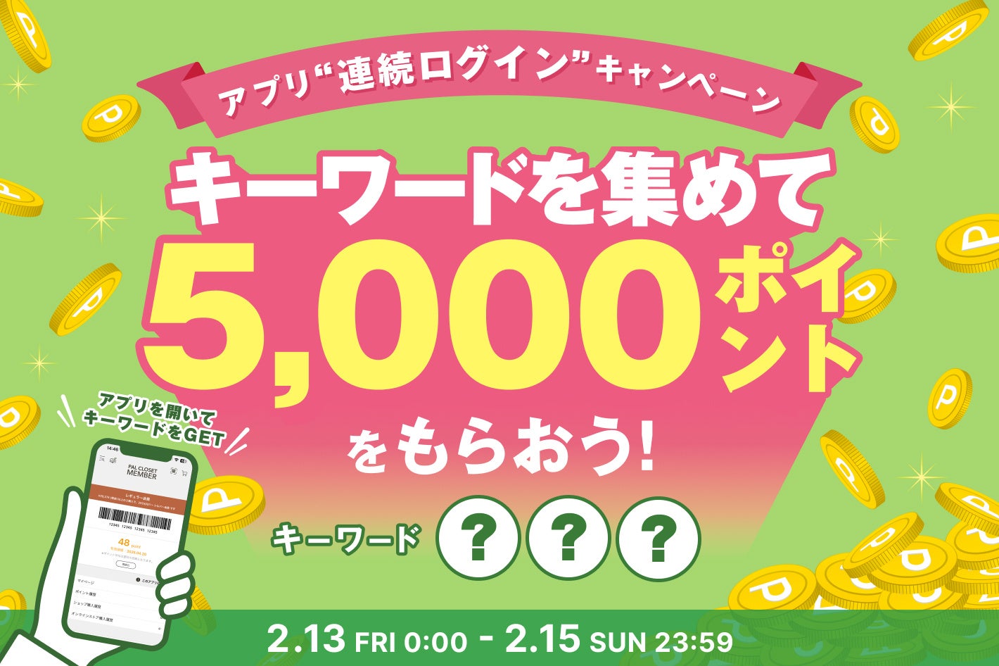 CAMPAIGN4:キーワードを集めて5,000ポイントをもらおう!アプリ連続ログインキャンペーン