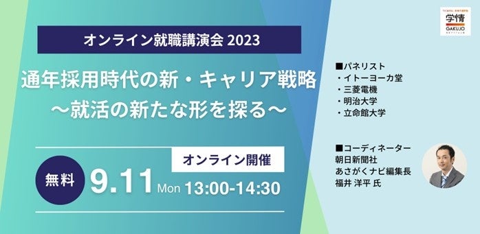 【9⽉11⽇(⽉)13時〜|オンライン開催|人事担当者様必⾒!】大学と企業で“就職・採用環境”を紐解く講演会/通年採用時代の新・キャリア戦略~就活の新たな形を探る~