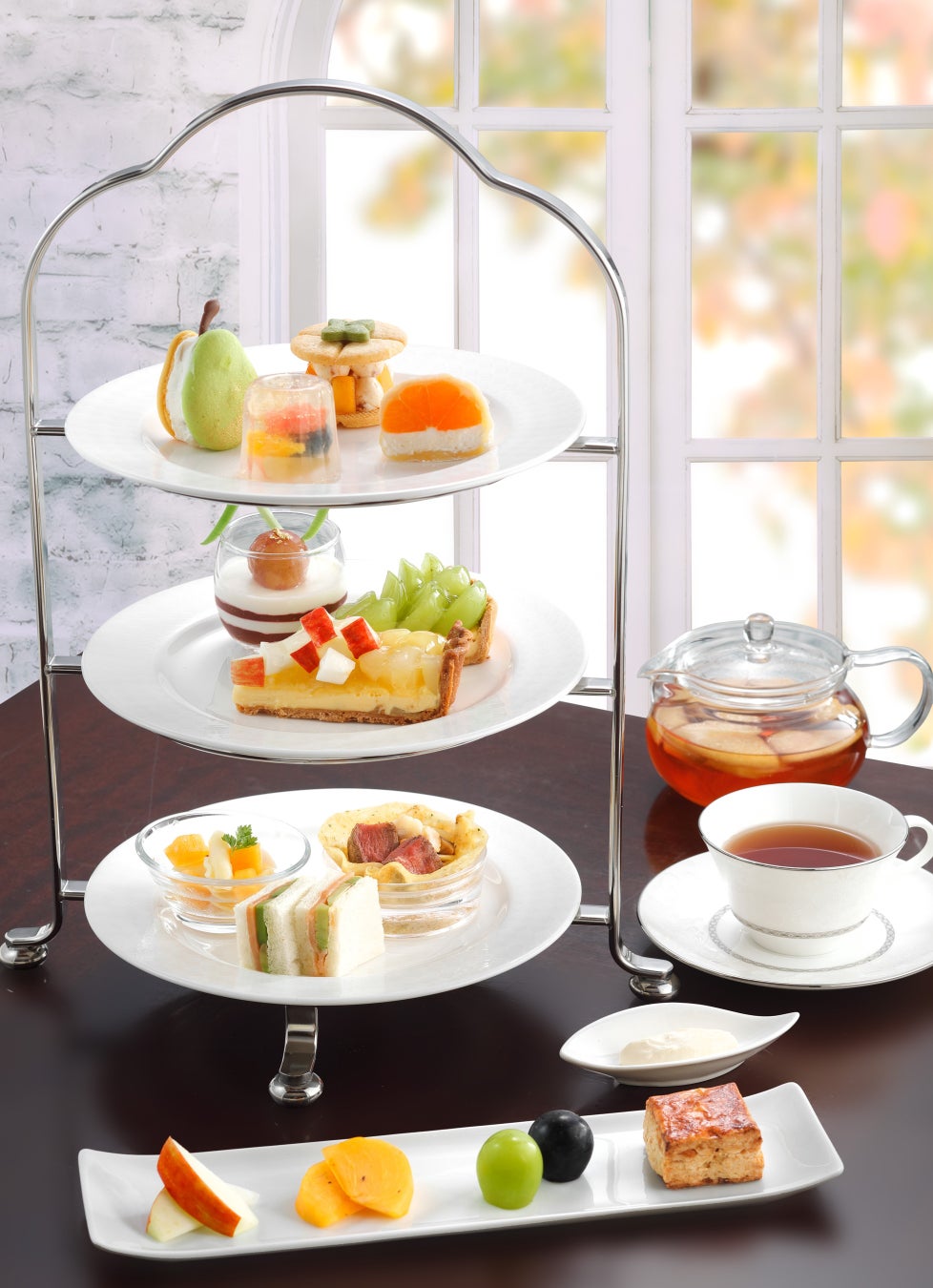 連日完売の大反響を呼んだ、行列の名店「山口果物」とシェラトン都ホテル大阪とのコラボアフタヌーンティーがこの秋ご好評に応えて再登場します。人気フルーツパーラーとホテルのパティシエのアイデアが一つになり、今年も旬のフルーツが満喫できるとっても贅沢なアフタヌーンティーができ上がりました。果物を知り尽くした山口果物ならではの貴重なフルーツアンサンブルや、彩りも鮮やかな3色のフルーツタルト、洋梨のマカロン、ピオーネのティラミス、柿とホタテのパスタなど、他では味わえない本コラボならではのフルーツ尽くしの幸せをご堪能ください。