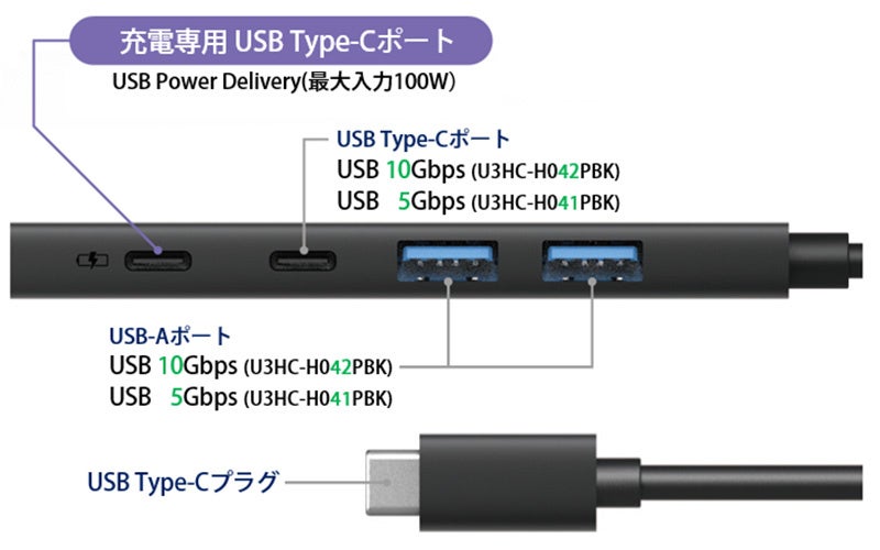 <USB 10Gbps> 型番:U3HC-H042PBK