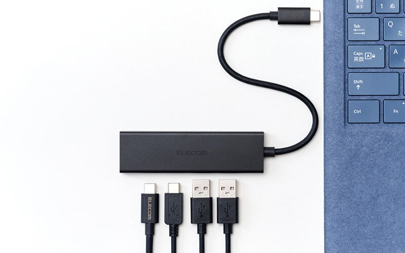 直付けケーブル&薄型ボディーで持ち運びに便利!USB 10GbpsとUSB 5Gbpsから選べるUSB Type-C×2、USB-A×2ポートのUSBハブを新発売