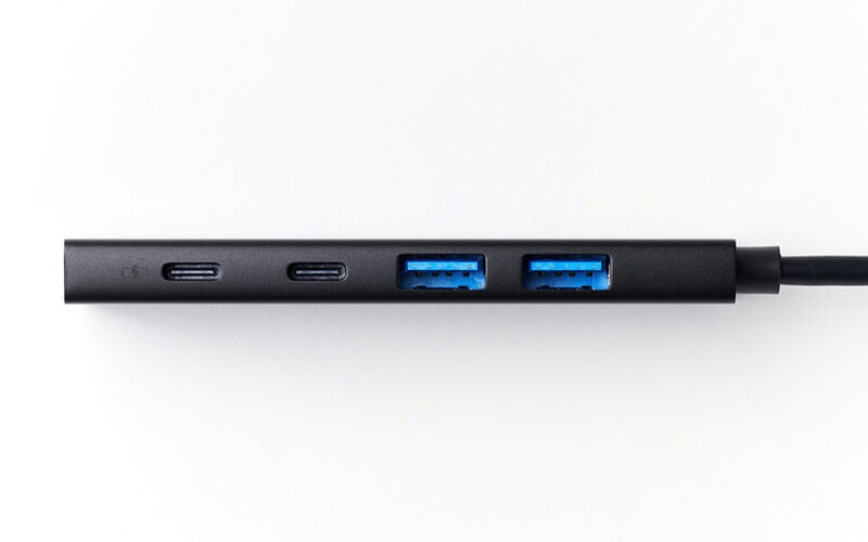 USB-A×2とUSB Type-C×2ポートを備えたスリムなUSBハブ