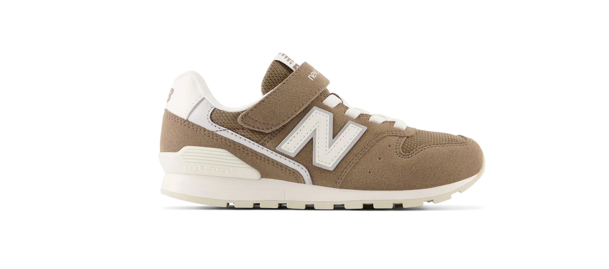 996のキッズモデル。コーディネートしやすいトーナルカラーをベースにニューバランスロゴを使用した面ファスナーを採用。