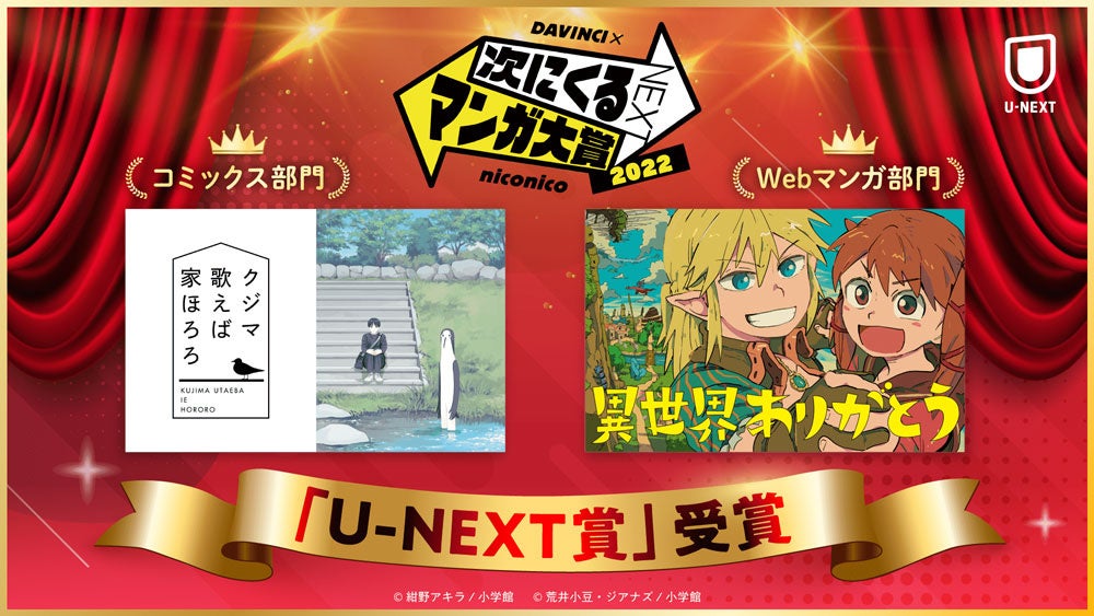 「次にくるマンガ大賞 2022」U-NEXT賞が『クジマ歌えば家ほろろ』『異世界ありがとう』に決定!受賞作&上位各20タイトルの無料&試し読みキャンペーンを実施