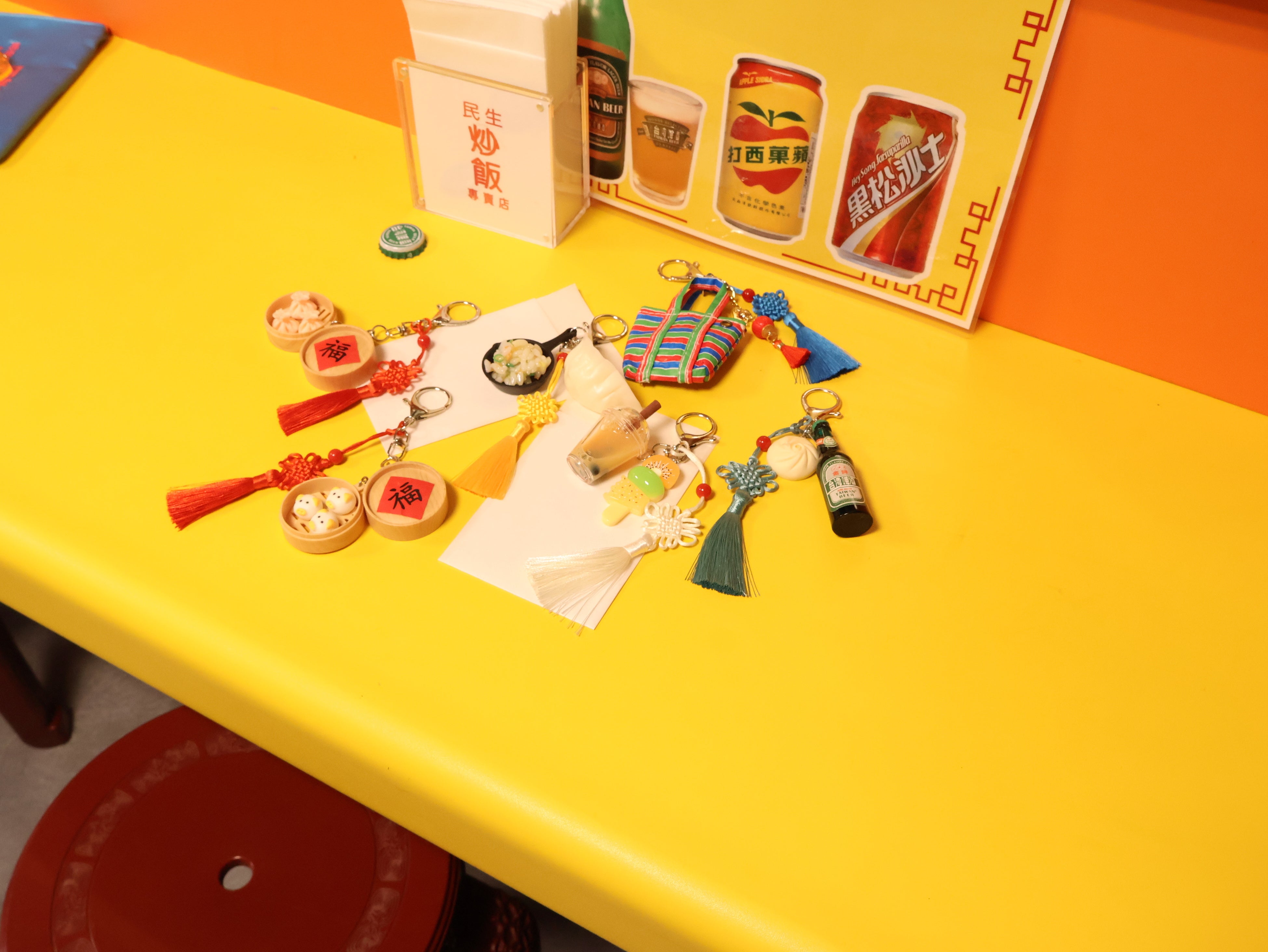 本コラボレーションでは、オリジナルロゴをあしらったTシャツやバッグ、台湾のローカルフードをメニュー風に刺繍したポーチなど、遊び心あふれるアイテムがラインアップ。チャームやキーホルダー、ステッカーなど、ファッションとライフスタイルを彩る雑貨も取り揃えました。また、レトロな雰囲気が可愛い台湾ビールグラスや豚まんチャームのほか、一部カラー展開は、ららぽーと横浜店限定で販売いたします。