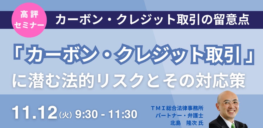 JPI(日本計画研究所)は、TMI総合法律事務所 パートナー・弁護士 北島 隆次 氏を招聘し、「カーボン・クレジット取引」に潜む法的リスクとその対応策について詳説いただくセミナーを開催します。