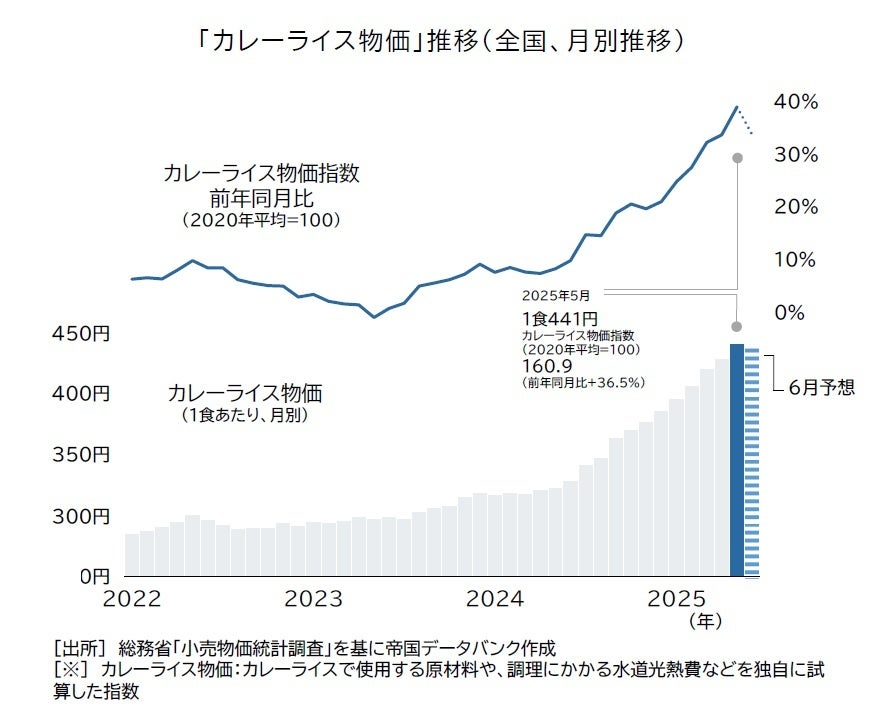 2025年5月のカレー物価1食441円 最高値を更新 6月は15カ月ぶりに前月から「値下がり」予想 備蓄米で最大3割安、高値ピーク超える