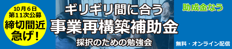【ギリギリ間に合う】事業再構築補助金 採択のための勉強会(無料/オンライン)【助成金なう】