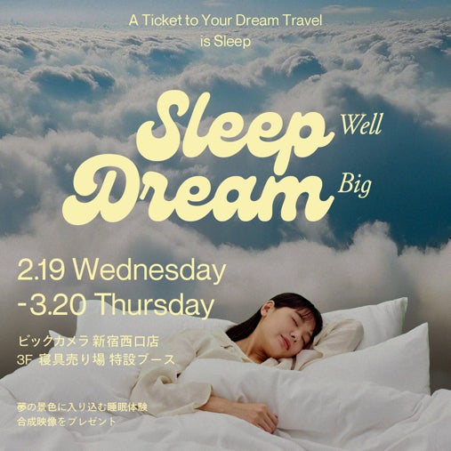 東日本電信電話株式会社(東京都新宿区、代表取締役社長:澁谷 直樹、以下「NTT東日本」)および株式会社NTT DXパートナー(東京都新宿区、代表取締役社長:阿部 隆、以下「NTT DXパートナー」)は、株式会社ビックカメラ(東京都豊島区、代表取締役社長:秋保 徹、以下「ビックカメラ」)と連携し、ビックカメラ新宿西口店 ねむりの専門コーナー「Bic Sleep Well」において、お客さまが睡眠製品を体験する様子を、美しい非日常風景と合成して映像化し、その場でSNSなどに投稿できるショート動画としてプレゼントする取り組みを2025年2月19日(水)から3月20日(木)まで実施します。