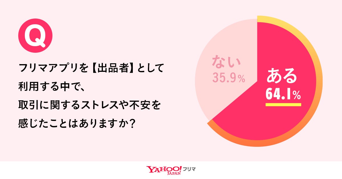 実際に「Yahoo!フリマ」が実施したアンケート調査では、フリマアプリを出品者として利用したことのある人の64.1%は、取引に関するストレスや不安を感じたことが「ある」と回答しています。