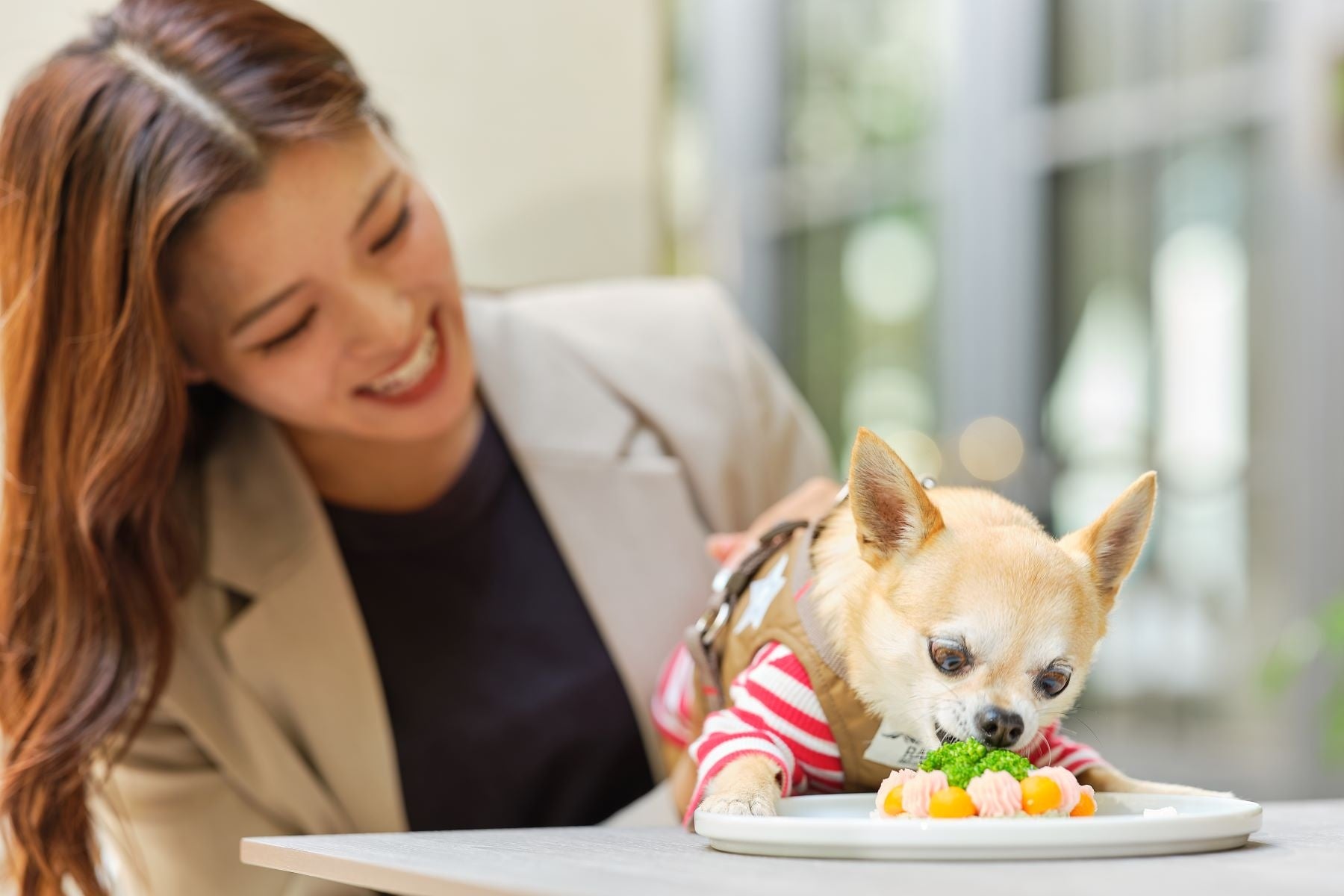愛犬と一緒に特別なひとときを過ごすことも可能で 、結婚式場の専属シェフが作るわんちゃんプレートランチ(1,000円)と専属パティシエが作るわんちゃんケーキ(1,000円)もご用意しております。