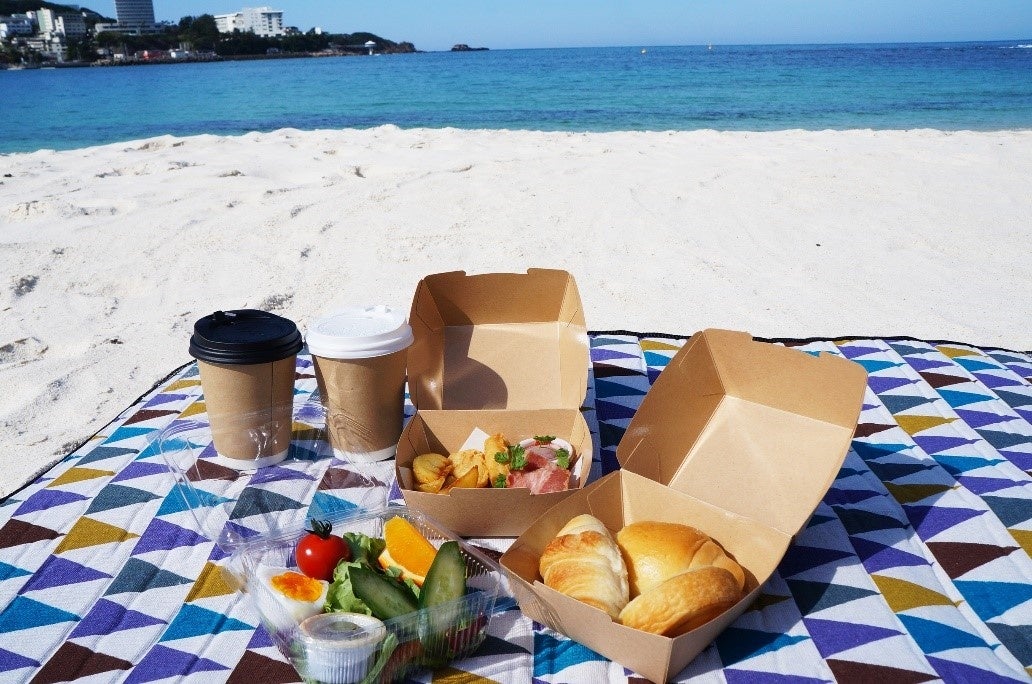 【白良荘グランドホテル】白良浜で朝ピクニック 1泊2食付き宿泊プラン 販売開始 ~白い砂と青い海のコントラストが絶景なビーチでおしゃピク~