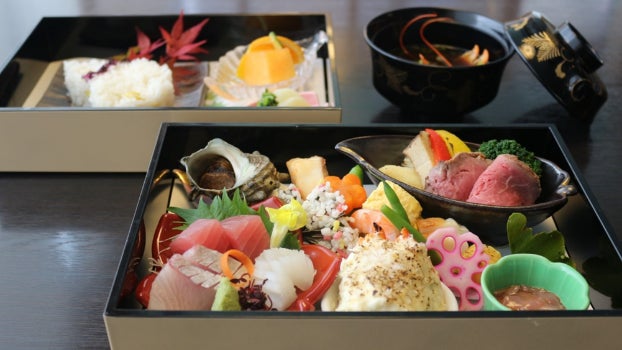 会席料理を折詰弁当にしてお部屋へお届けいたします。